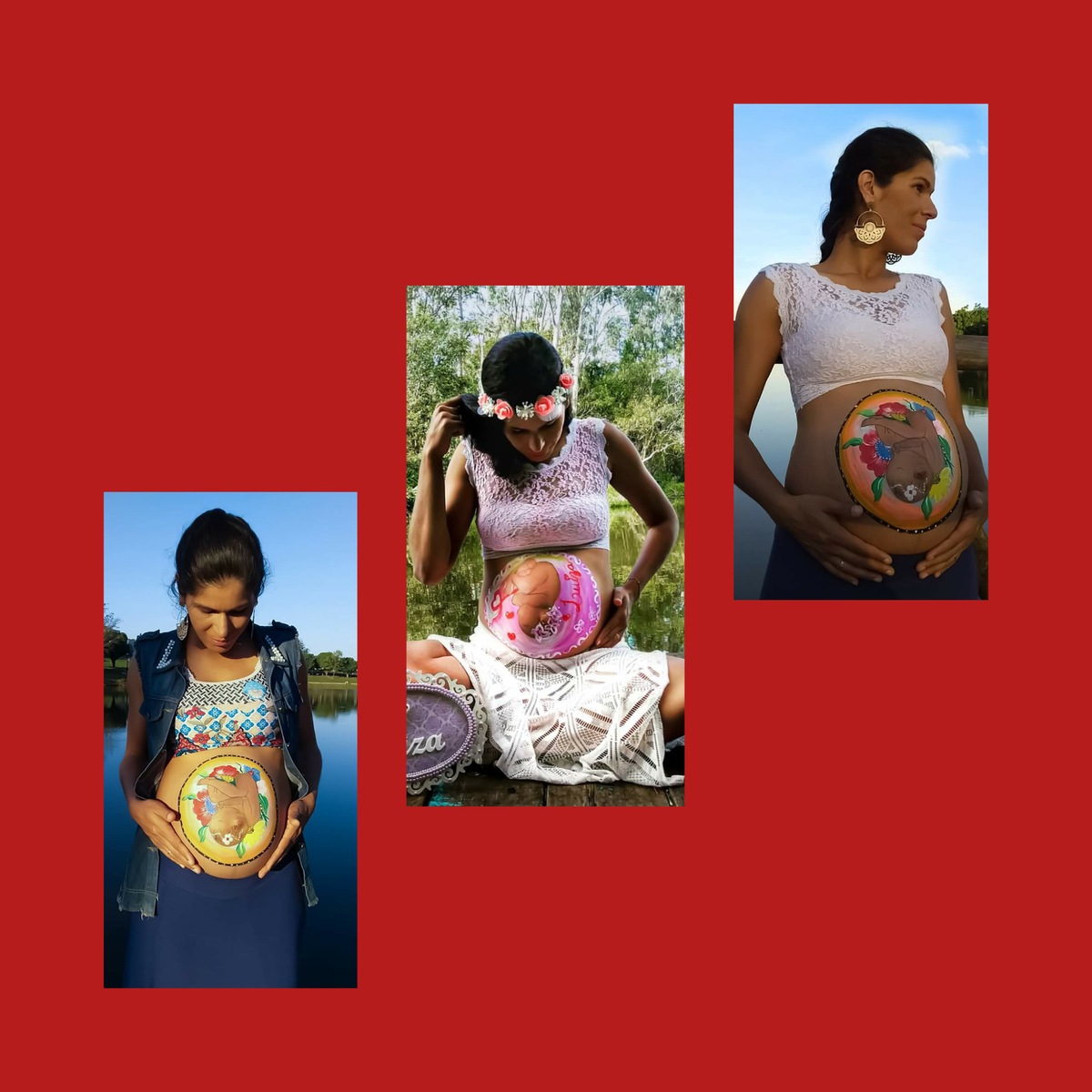 Então resolvi pesquisar se já existia aqui no Brasil só encontrei em São Paulo, nos U.S.A, é super normal e tem muitos pintores criativos e essa técnica é chamada de arte gestacional ou Belly Painting.